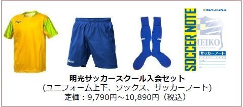 明光サッカースクール入会セット内容: (ユニフォーム上下、ソックス、サッカーノート)