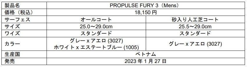 バボラVSジャパン株式会社 (本社:東京都狛江市、カントリーマネージャー:梅原 充史)は、バボラのテニスシューズのフラッグシップモデルである【PROPULSE FURY(プロパルス フューリー)】のDNAを受け継ぎバージョンアップしたメンズ用「PROPULSE FURY 3」を発表。2023年1月27日から発売いたします。