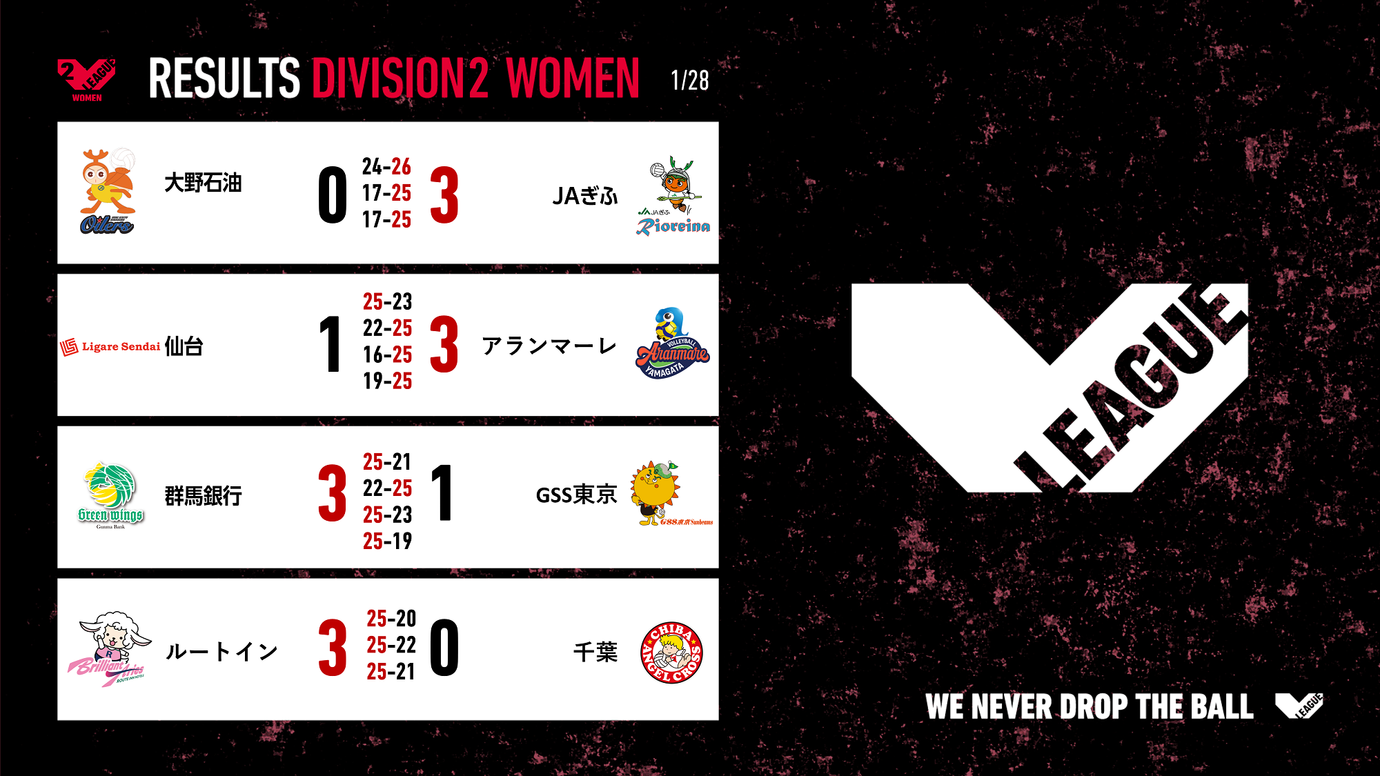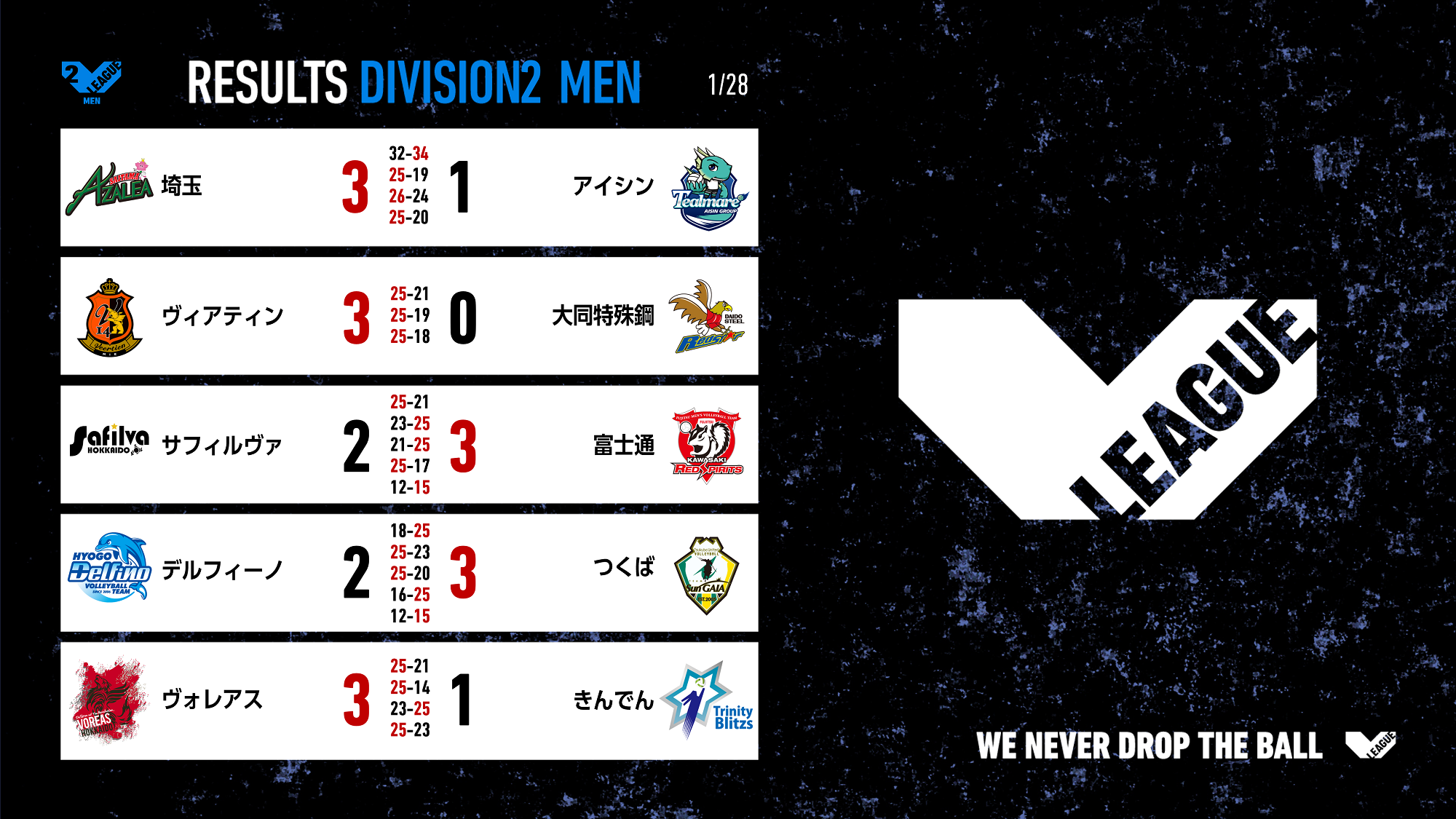 バレーボール国内最高峰リーグ V.LEAGUE【1月28日の試合結果】