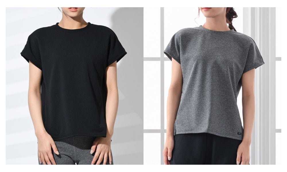 ドルマンスリーブで抜け感がおしゃれなデザインのトップスは、YOGA by glamoreの長袖インナー類との重ね着に最適。ショートパンツと重ね着したときの丈感のバランスのよさも魅力です。また、袖口が広めで腕の動きを妨げないのもポイント。ワイドシルエットでボディラインが気にならず、透けにくいので、一年中着回しができます。