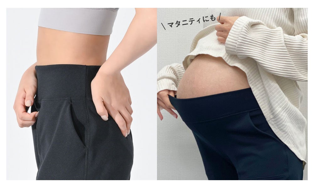1. すっきりシルエットの美脚設計なのにマタニティ期も着用OKの「ジョガーパンツ」。