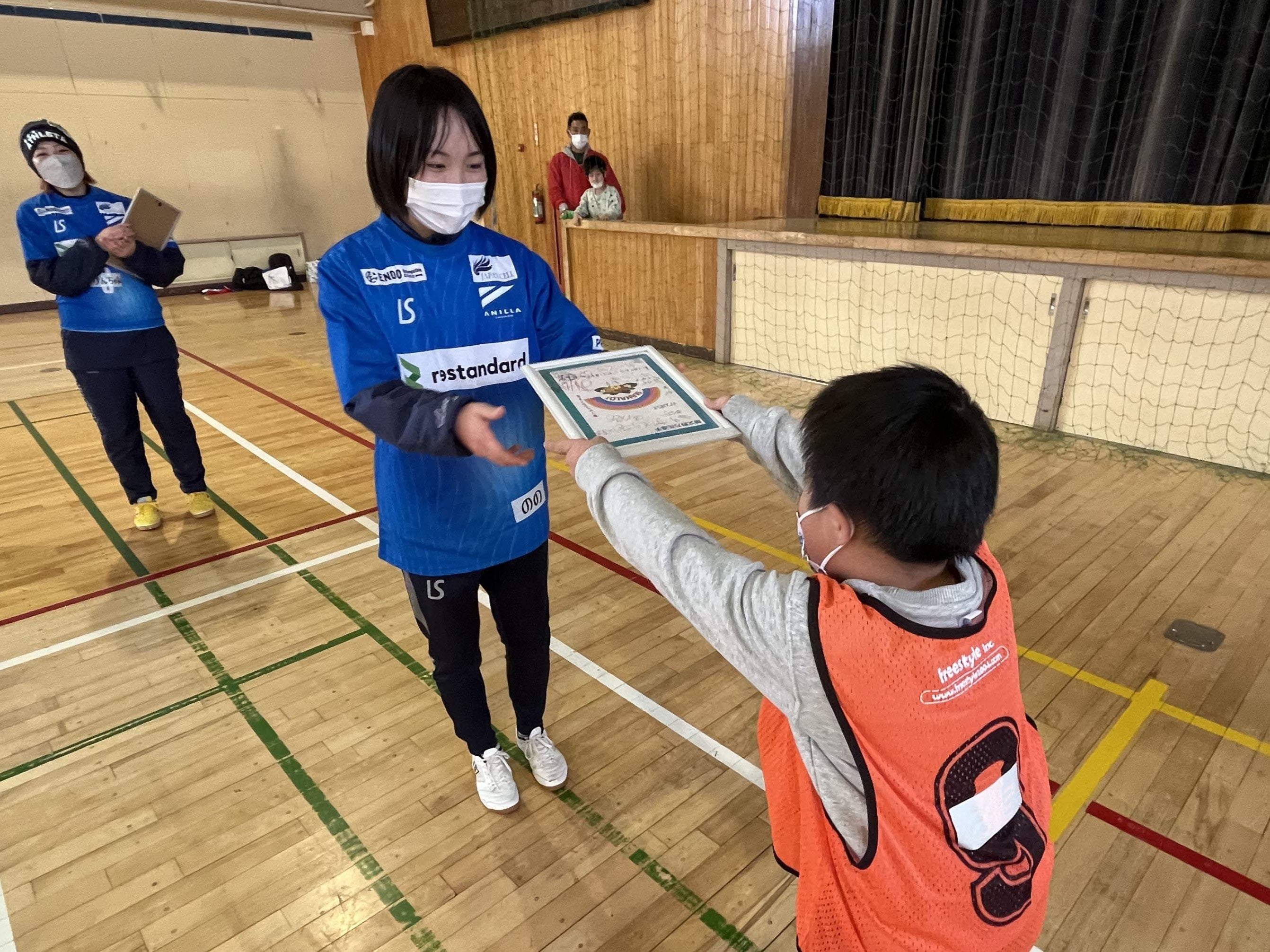 「貴重な機会に参加させていただきありがとうございました。始まりは緊張している様子も見られましたが、徐々に自ら進んで参加できるようになり、この短時間でも成長する姿を見る事ができて心温まりました。少しでもフットサルの魅力が伝わっていれば嬉しいです。」