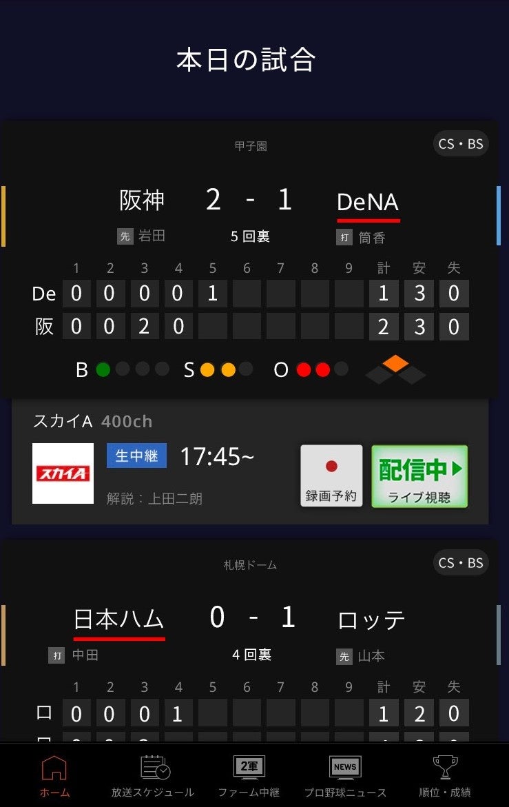 ✓ オープン戦、オールスター、CS、日本シリーズの試合予定が確認でき、当日の試合はオンデマンドアプリ