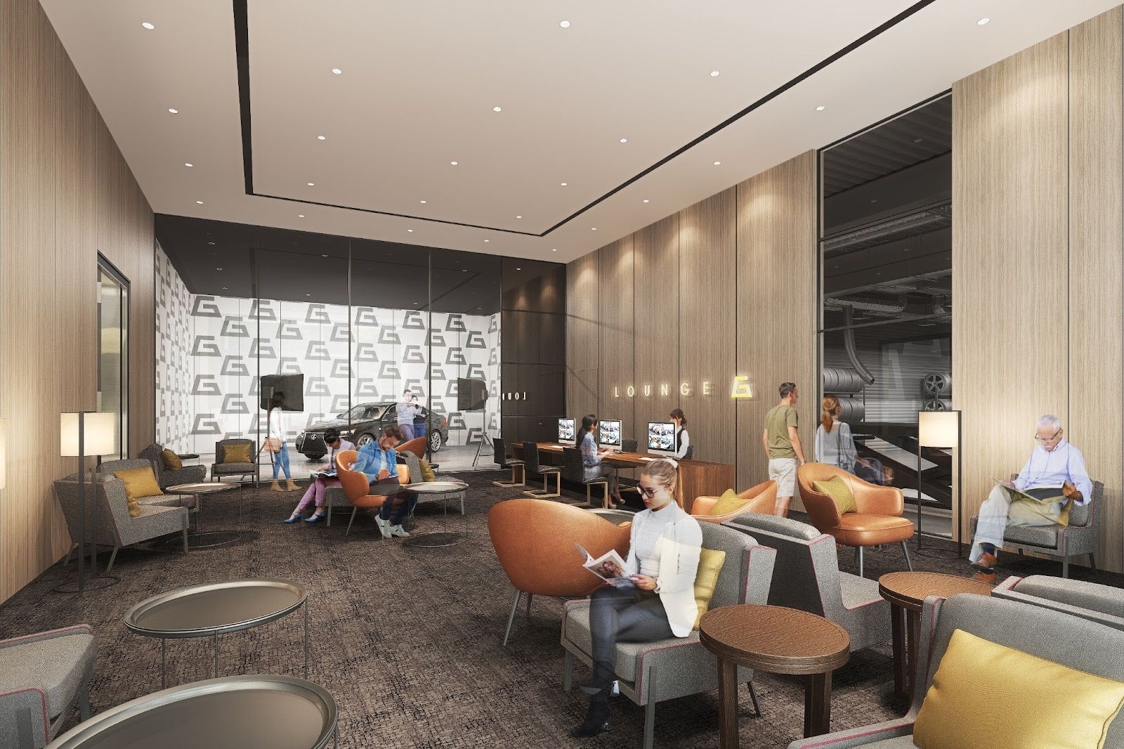 アフターラウンジ:メンテナンス等のアフターサービスをお待ちいただく間にご利用可能なご契約者専用ラウンジスペースとなります。ホテルのフロントのような洗練された雰囲気の中で、メンテナンスが完了するまでの間、リラックスした空間をお楽しみいただけます。