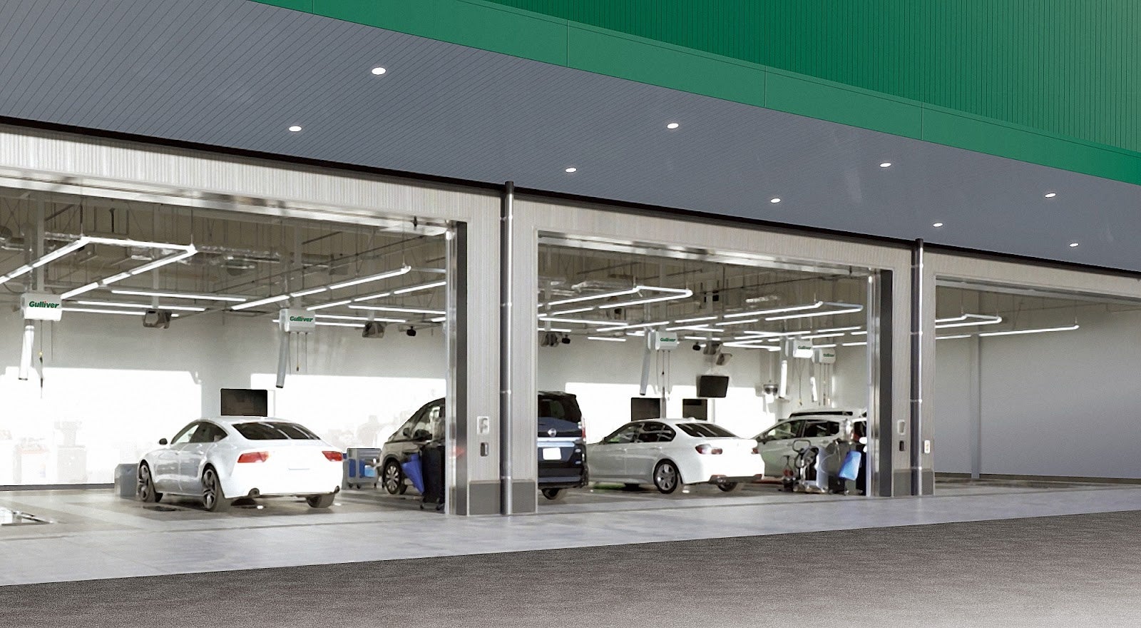 新デザイン店舗は、各出店地域において、最大級規模となる広大な店舗敷地を特徴としており、あらゆるメーカー・車種を有する広大な展示車両スペースを構える他、最先端の設備を凝縮した自社工場を併設、最新設備の導入や技能・ケアの専門性を集結させ、高品質で細やかなアフターサービスの提供を実現します。