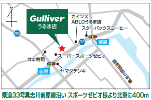 県道33号具志川前原線沿い スポーツゼビオ様より北東に400メートル ※下記アクセスマップ参照。 |
