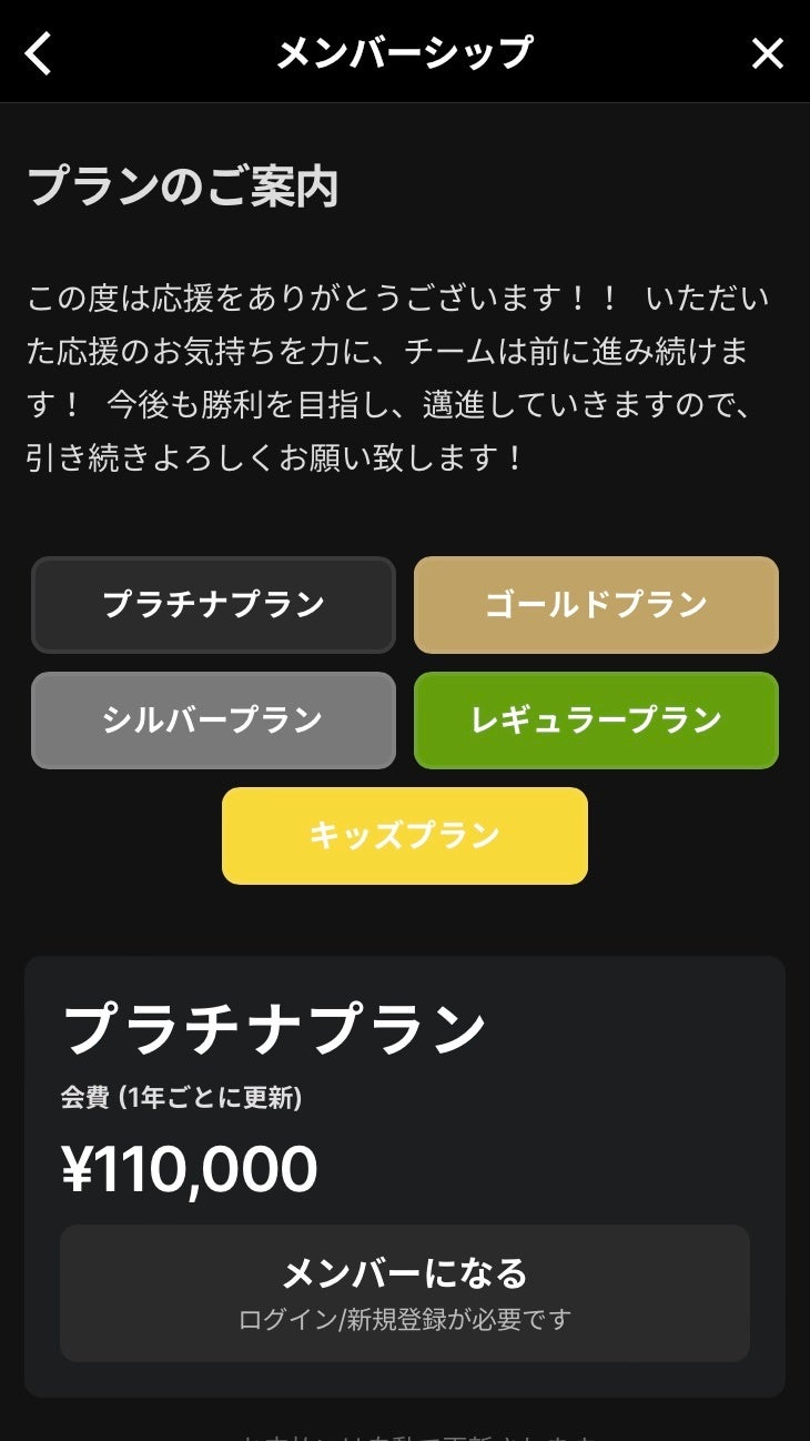 メンバーシップ機能からファンクラブ会員になって頂くと、チームから特別なグッズをお届けします!
