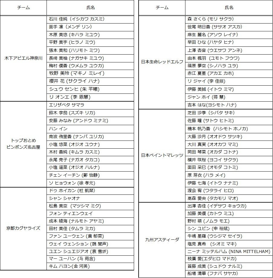 【ノジマTリーグ 2022-2023シーズン 登録完了選手(女子)】