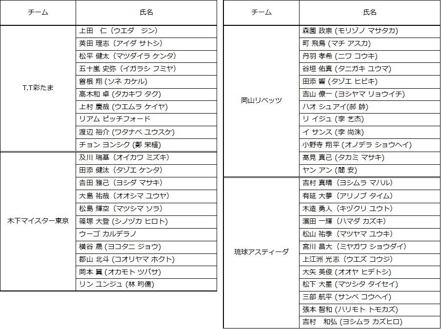 【ノジマTリーグ 2022-2023シーズン 登録完了選手(男子)】