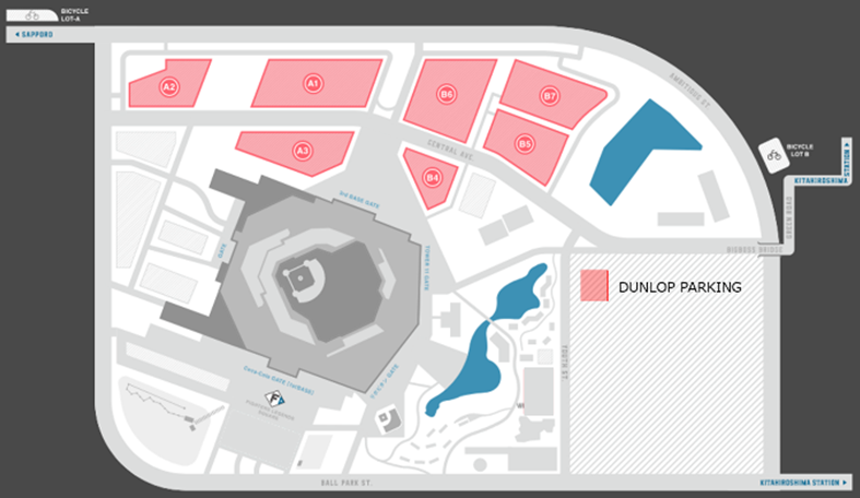 ※「DUNLOP PARKING」(ダンロップ・パーキング)はFビレッジ内の下記7ヶ所の駐車場(一般)になります。