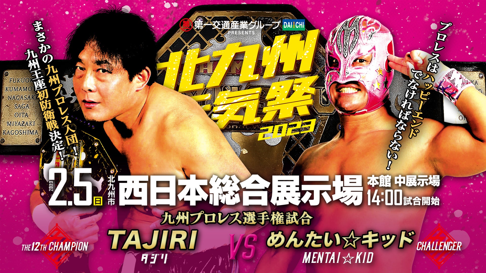 〈九州プロレス選手権試合〉〜60分1本勝負〜 [王者]TAJIRI vs めんたい☆キッド[挑戦者]