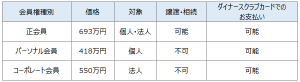 ※上記とは別に年会費72,600円がかかります。上記会員権のお支払いにはダイナースクラブカードがご利用いただけますが、年会費のお支払いにはご利用いただけません。※金額は税込表示です。
