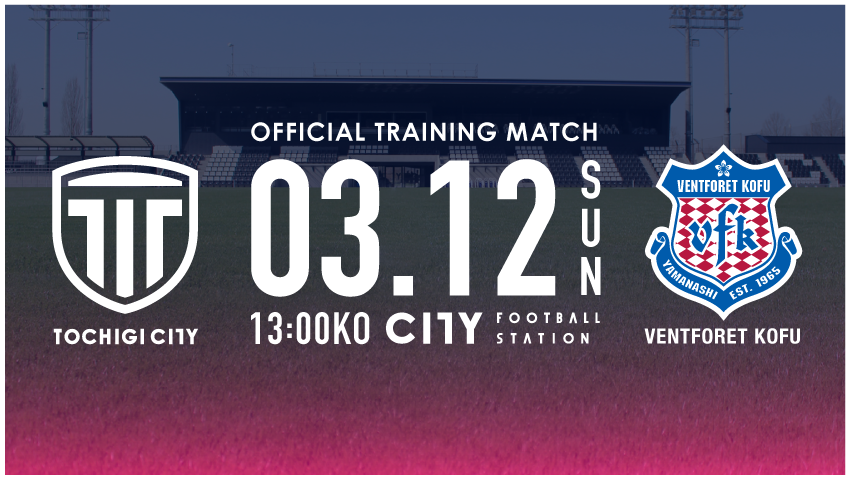 2023年3月12日(日)、栃木シティのホームスタジアムである「CITY FOOTBALL STATION」でオフィシャルトレーニングマッチを開催することが決定いたしましたので、お知らせいたします。
