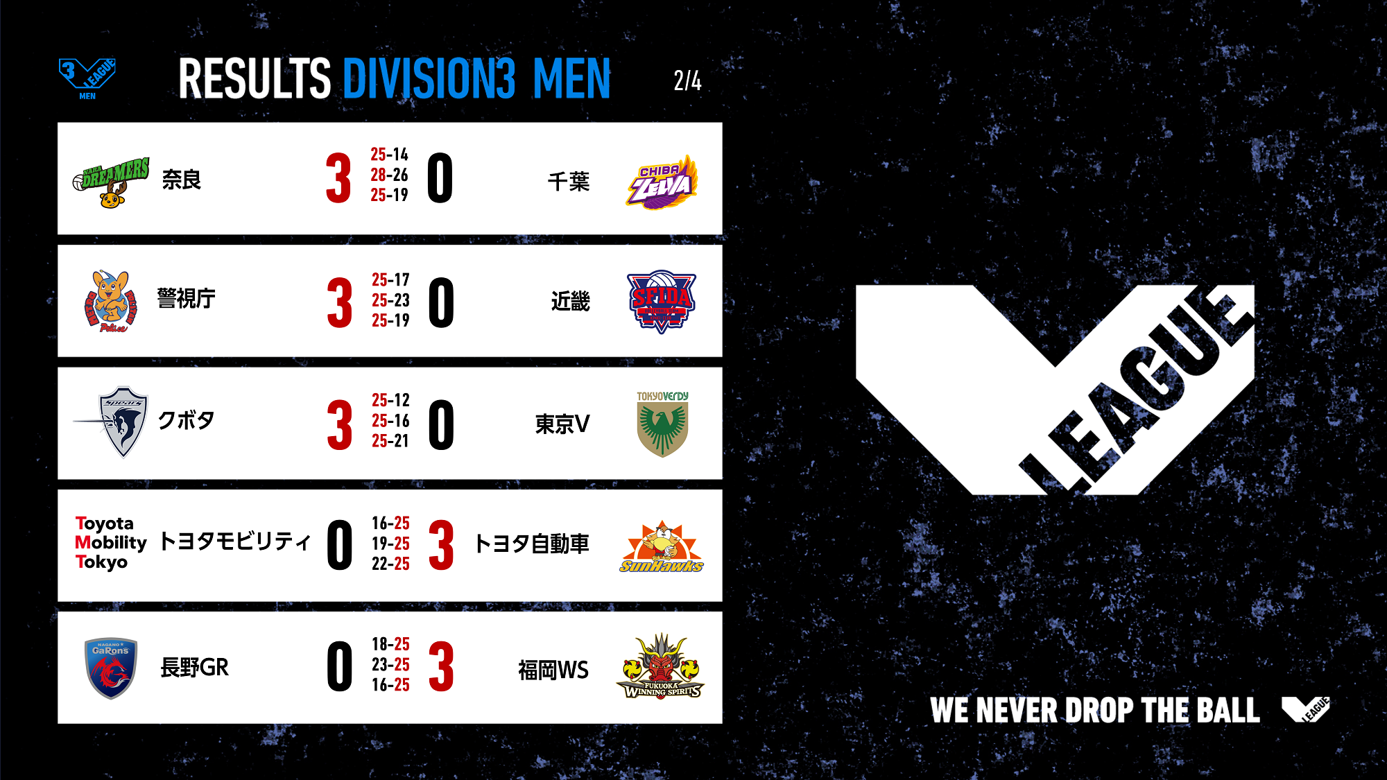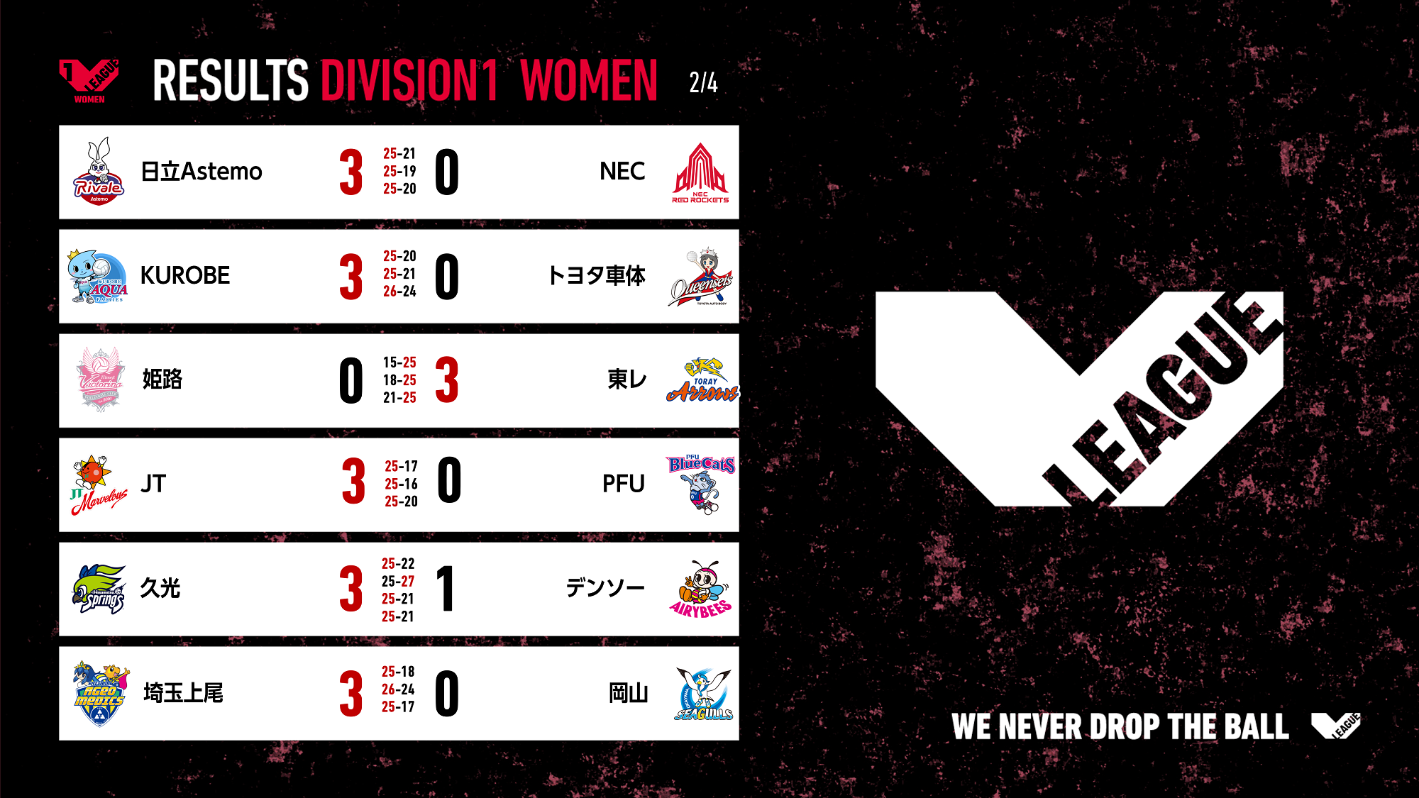 バレーボール国内最高峰リーグ V.LEAGUE【2月4日の試合結果】