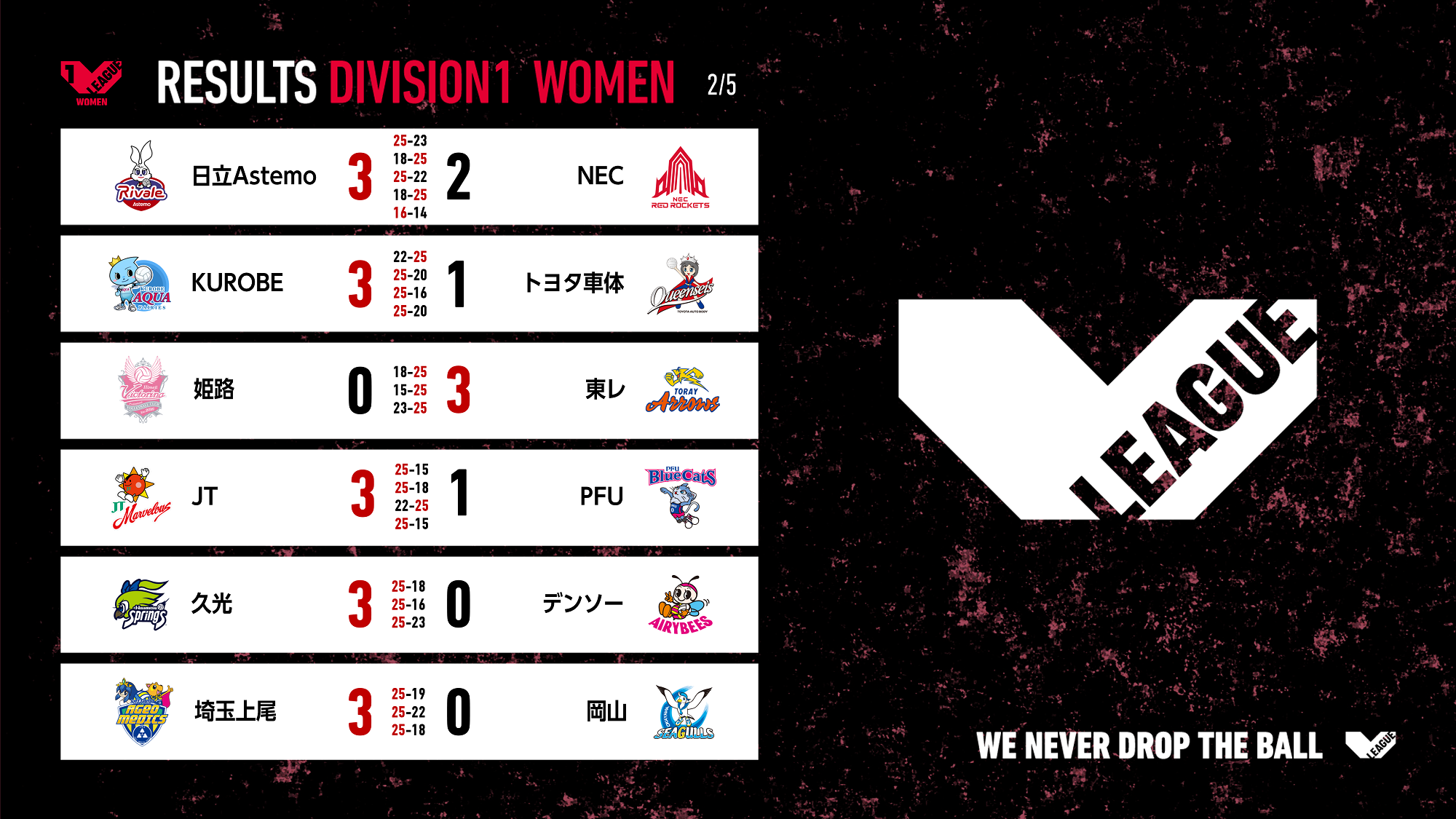 バレーボール国内最高峰リーグ V.LEAGUE【2月5日の試合結果】