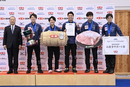 「ニッポンの食」を手に笑顔の選手の皆さん(写真提供:JCA)