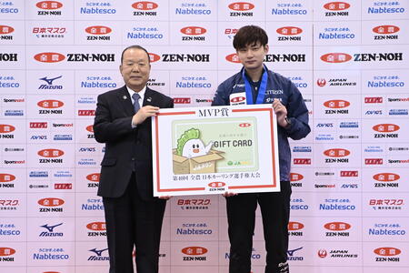 男子MVP賞の栁澤李空選手(SC軽井沢クラブ)(写真提供:JCA)
