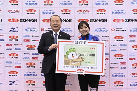 優勝した両チームへ副賞として、開催地である北海道産和牛30キロと北海道産米「ゆめぴりか」300キロを全農の経営管理委員会 菅野幸雄会長より贈呈しました。さらに日本代表チームとして海外に遠征する際、全農が現地での食事をサポートする「海外遠征時のお食事サポート券」もお渡しし、選手の皆さんの笑顔が溢れる表彰式となりました。女子日本代表チームとなったLOCOSOLAREは3月にスウェーデンで開催される世界女子カーリング選手権大会に、男子日本代表チームとなったSC軽井沢クラブは4月にカナダで開催される世界男子カーリング選手権大会に出場します。