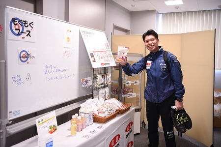 来場メディアの皆さんの控室に設置したブースでも、選手の皆さんに提供した商品と同じものを、日替わりで毎日提供しました。長期間に渡って朝早くから夜遅くまでの取材や、生中継などを続けられているメディアの皆さんも「ニッポンの食」で応援しました。