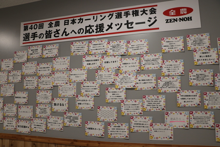 Twitterアカウント「全農広報部 スポーツ応援(@zennoh_sports)」では、スポーツに関わる情報や、「食」を通じてアスリートの皆さんを全農がサポートする取り組みなどを発信しています。今大会では、「#頑張れカーラー」で出場選手への応援メッセージを募集し、「寒い日が続く北見ですが、体調に気を付けて頑張ってください」、「カーラーの皆さん、日本選手権では各チームが力発揮できるように素晴らしいパフォーマンスを期待しています!Good Curling!!」といったファンの皆さんからの温かい言葉が150件も投稿されました。寄せられたメッセージは会場内に展示し、選手の皆さんが足を止めてメッセージを読む姿が見られました。