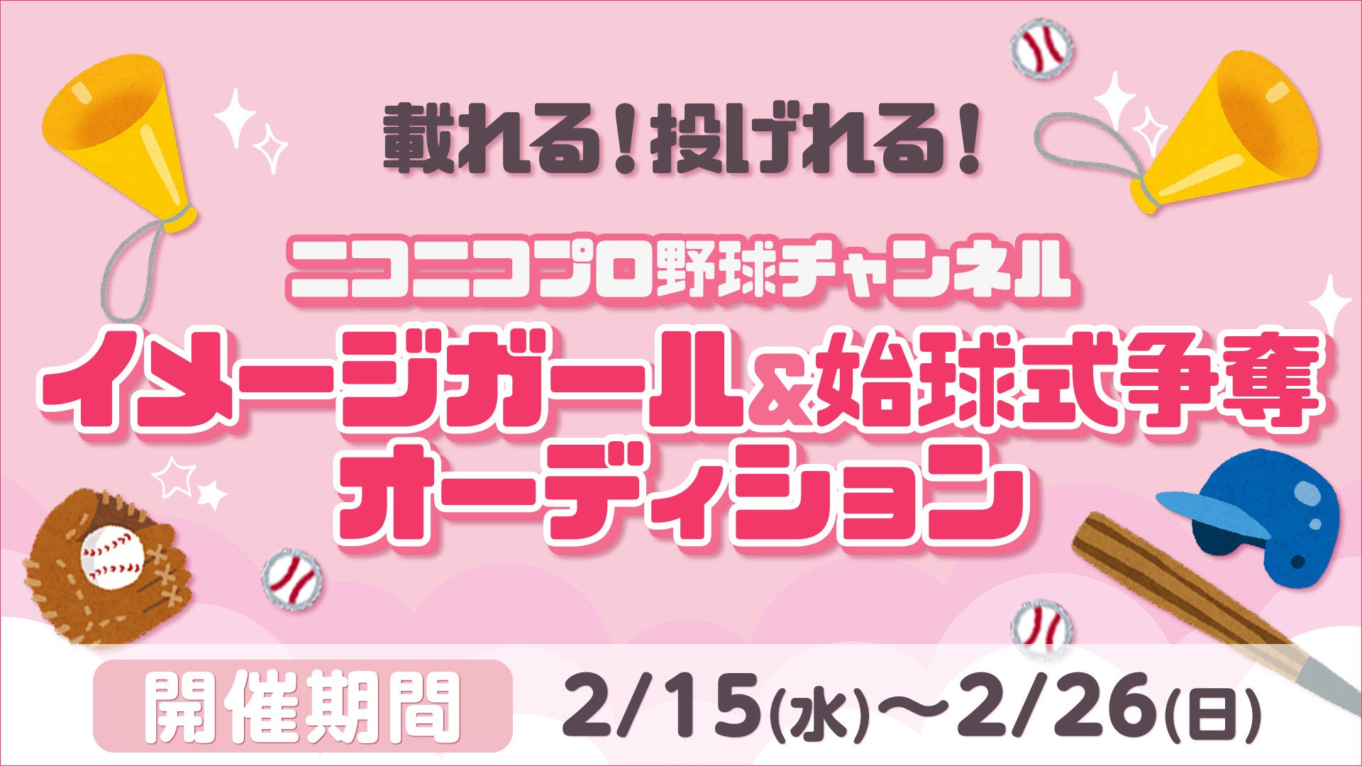 ニコニコ生放送では、ニコニコプロ野球チャンネル イメージガール起用・始球式投球権・インタビュー記事掲載権の、3つの特典を優勝者に提供するオーディション企画を開始しました。エントリー&生放送の配信で、活躍のチャンスを掴みましょう!