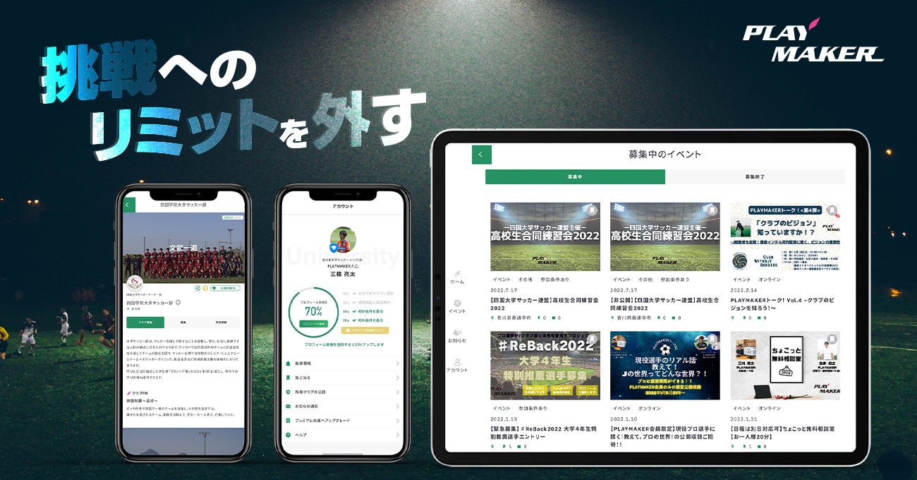 株式会社PLAYMAKER(本社:長野県飯綱町、代表取締役:三橋亮太、以下PLAYMAKER)は、2023年1月より、全国の高校サッカー部に所属する選手に向けて、大学サッカーへの推薦受験を支援する進路サポートプログラムの提供を開始いたします。