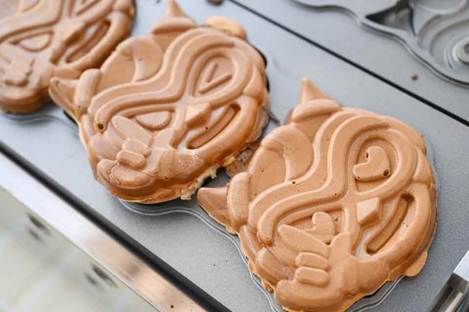 今回は、富山県らしいタツヲ焼きにしたく、同じSBPに取り組んでいる富山県立滑川高校の皆さまに相談しました。そして、富山県には、やわらかくてジュ-シ-な「あんぽ柿」という干し柿があると教えていただき、滑川高校の皆さまと一緒に「あんぽ柿入りクリ-ムチ-ズ味」を考案しました。当日は、滑川高校の皆さまと合同出店を行いますので、ぜひ、お越しください。
