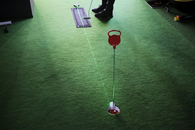 パタースペースにはバッティング解析センサー「キャプト」を導入。また、徹底的アプローチのトレーニングために順目・逆目の人工芝を配置しています。