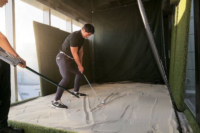 多くの方が苦手とするバンカーショットを克服することを目的とするバンカースペースでは、本物の砂を使った練習スペースにおける、バンカーショットのためのメゾッドを伝授致します。