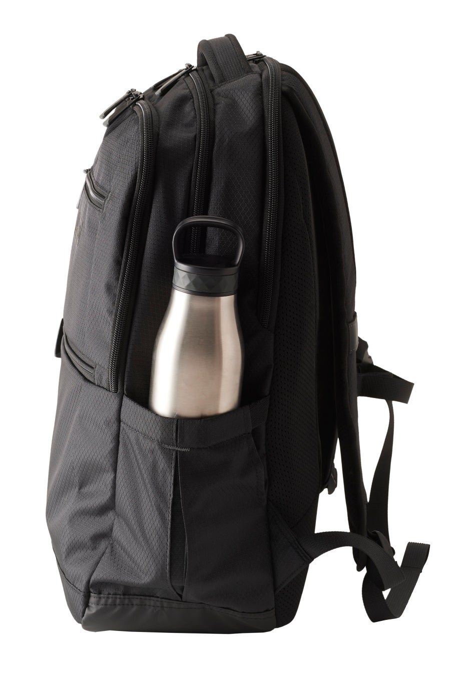 小物を整理しやすい上下2つのフロントポケットをはじめ、タブレットスリーブやサイドポケットなど多彩な収納スペースが特長。収納力がありながらも全体的にスリムにまとまっており、ビジネスはもちろん、アウトドアシーンでも使いやすいモデルです。