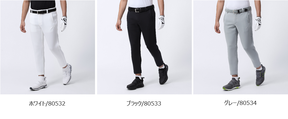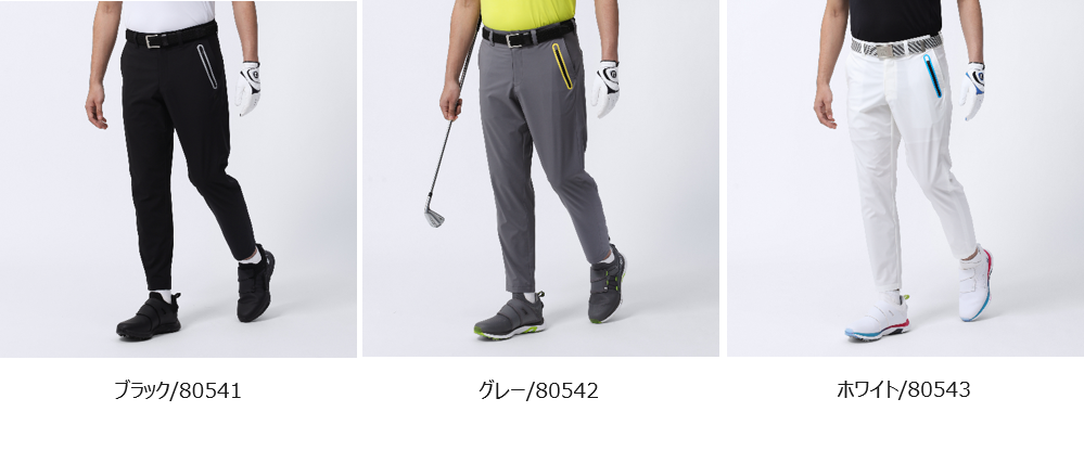 1.高ストレッチ:スイングやパターなどのゴルフ中の様々な動きに対応したストレッチ素材を採用することでストレスフリーな着用感を実現。