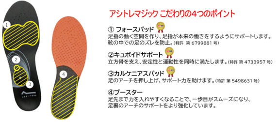 足のサポート性能が圧倒的に向上し、本来の運動性能を最大限に引き出すことができますので、足のトラブル改善や、スポーツのパフォーマンスサポートにも大変有用です。