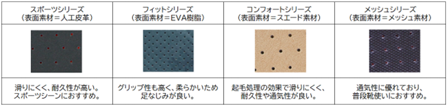 耐久性や吸湿性の高いスポーツタイプから、日常使いにおすすめなメッシュ素材など、ご使用状況やご使用になる靴に合わせ、選ぶことができます。