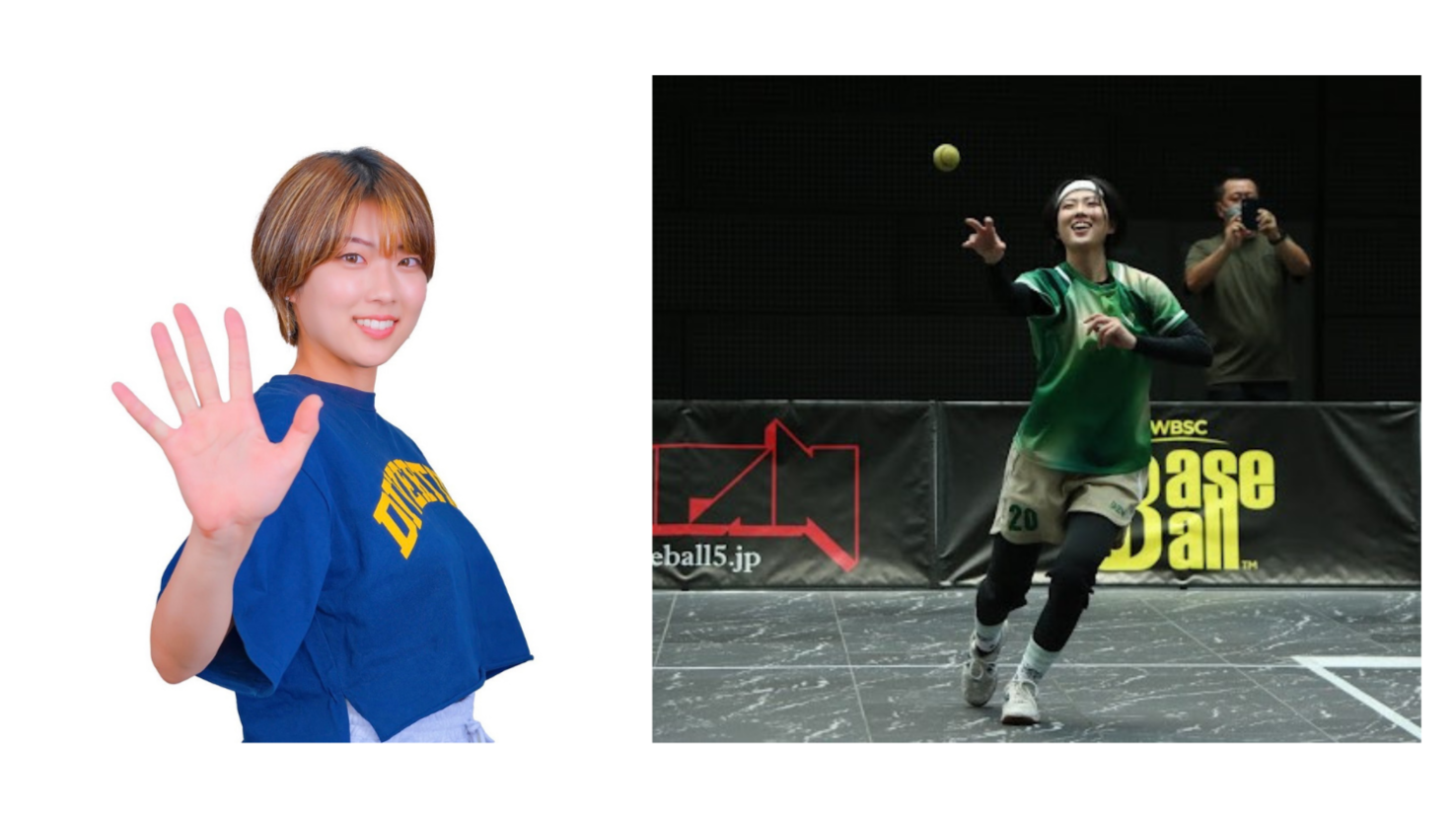 2000年生まれ。名古屋市立大学経済学部在学中(4年生)。小中高野球一筋、男子と一緒に軟式野球を続ける。岐阜高校軟式野球部に所属し練習をするが、ルールにより女性は公式戦に出場できない経験をし、スポーツにおける男女差に課題感を持つ。大学時代に男女混合の5人制手打ち野球“Baseball5”と出会い、東京ヴェルディ・バンバータBaseball5の選手となる。現在は愛知eスポーツ連合・名古屋OJAでインターンをしながらBaseball5の普及活動を行う。