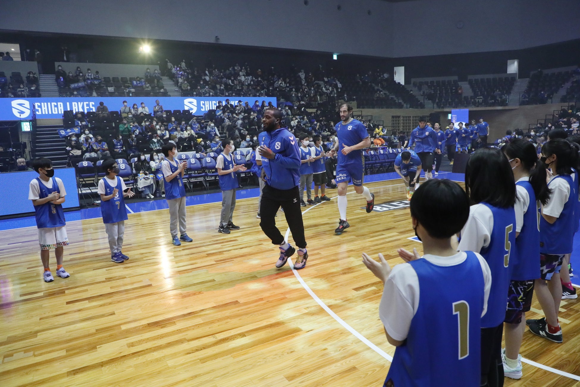 ドリームクリニックに参加した瀬田スポーツ少年団ミニバスケットボール部には、オリジナルビブス10枚、公式球1球が贈呈され、クリニックを終えた後の子どもたちには、その後に同じコートで行われた「B1リーグ第14節 滋賀レイクスvs京都ハンナリーズ」の試合を1階席で観戦してもらいました。