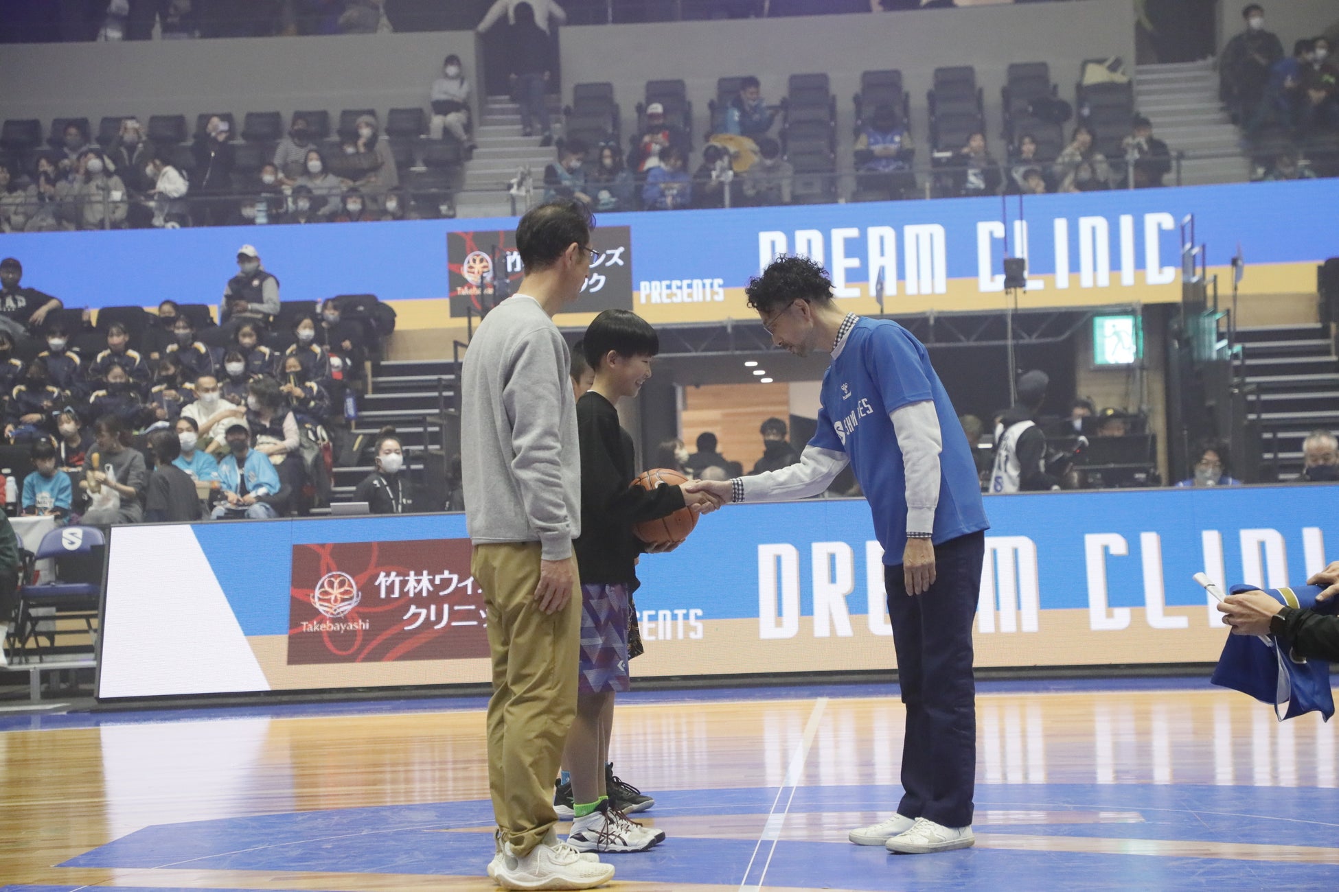 試合前には本企画の「レイクスドリームクリニック」に協賛していただいた竹林ウィメンズクリニックからの贈呈式を実施。
