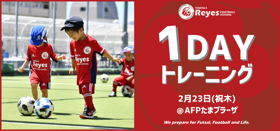 東急Sレイエスフットボールスクールのスクールを2月23日(木)に開催いたします。テーマのプレーを習得できるようにウォーミングアップからゲームまで、東急Sレイエス フットボールスクールのコーチが丁寧に指導いたします。祝日に時間があるのでスクールを受けたい方やサッカー、フットサルをやったことのないお子様でもお気軽にご参加ください。