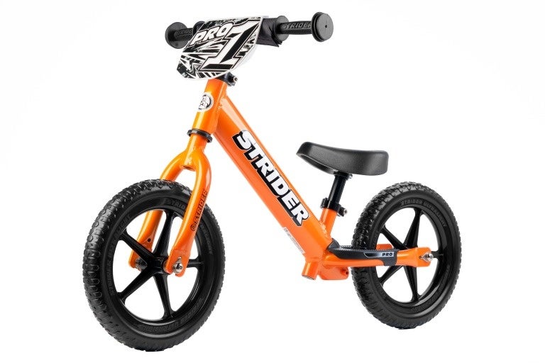 ストライダープロは「シンプルで軽く」というストライダーのコンセプトをさらに進化させたハイグレードモデル。本体フレーム、ハンドル、フロントフォークと主要パーツにアルミを採用し、スポーツモデルと比較し500グラムの軽量化を実現。取り回しがしやすく、錆びにくく、剛性が高く、ハードなレースシーンにも最適です。