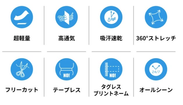 速乾性能が非常に高く、一般的なスポーツインナー生地の倍のスピードで乾きます(当社比)。