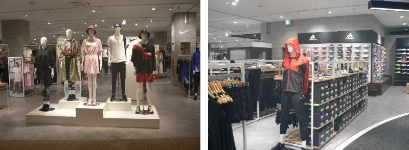 広く開放的な入口正面からノースフェイスやナイキといった有名スポーツブランドをブース展開し、各ブランドの世界観を表現しています。ファッション性の高いスポーツアパレル、シューズを豊富に取り揃え、各コーナーにてスポーツファッションコーディネートをご提案いたします。また、 TIGORAなど自社オリジナル商品も多数ご用意しております。