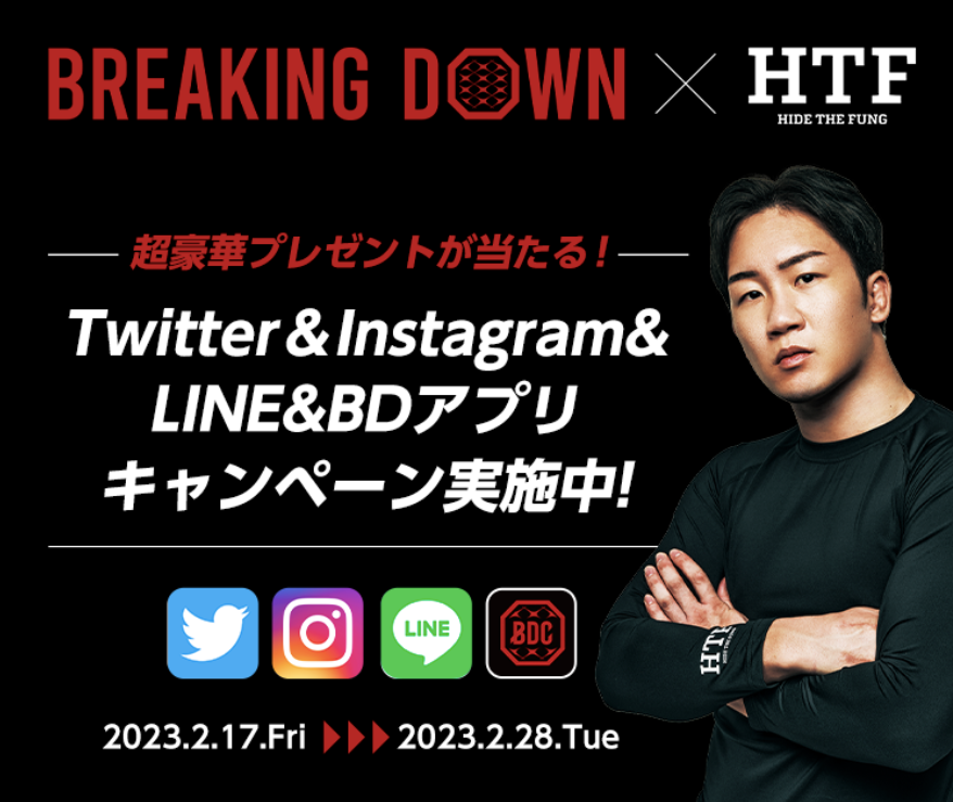 BreakingDown8の観戦チケットや朝倉美来着用のサングラスプレゼント、商品最大20%オフなどの特大キャンペーンを2023年3月10日まで限定で実施しております。購入者全員がもらえるHTFオリジナルステッカー、HTFオリジナル壁紙などもご用意しておりますので是非この機会にお買い求め下さい。