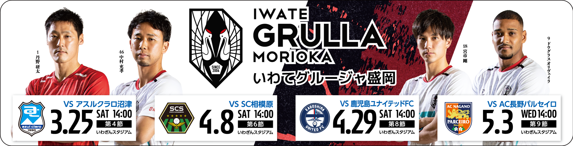 いわてグルージャ盛岡は、岩手県全14市15町4村をホームタウンとする、日本プロサッカーリーグ(Jリーグ)に加盟するプロサッカークラブです。『グルージャ』はスペイン語で『鶴』という意味。盛岡藩主南部家の家紋『向かい鶴』と、盛岡名物『じゃじゃ麺』、岩手の方言に多く含まれる『じゃ』の響きにちなんでいます。チームカラーは『ホワイト』で、チーム名の由来でもある『鶴』の色、そして北国の冬の厳しさを乗り越え、強くたくましく羽ばたく岩手スピリットを表現。フェアプレーの精神に基づき、 未来へ羽ばたく子供たちと岩手県民の夢を鶴が翼を広げて羽ばたく姿へ重ね合わせる意味。また『ホワイト』は勝ち星の『白』でもあり、Jリーグへ向けて勝利を勝ち取る意味もあります。「一岩」をスローガンに掲げ、スポーツの領域を超え、世代と地域を繋ぎ、岩手に携わるすべての人々の生活に息づいたプロサッカークラブとなることを目指していきます。