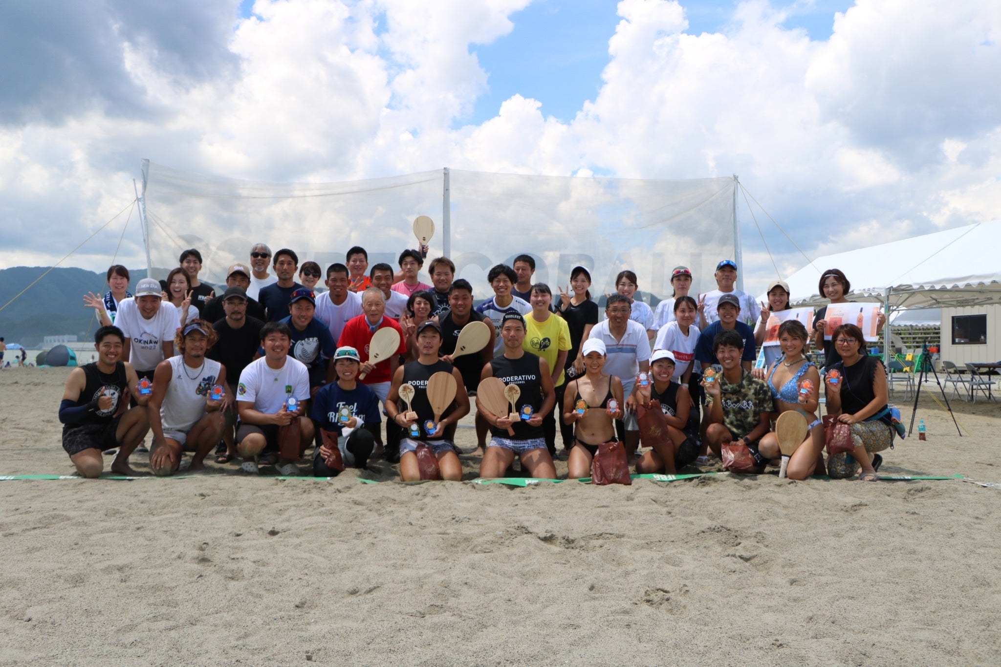 普及が始まったのは、東京で選手活動を行っていた橋詰選手が陸前高田へ移住したことがきっかけ。以降、着実にフレスコボールの輪が広がり、地域の人々によって今日まで活動を継続。2022年には「奇跡の一本松」で知られる高田松原海水浴場で東北地方で初となる公式戦を開催。このほか、地元産材・気仙杉を用いたフレスコボールラケット&トロフィーづくりなど、ユニークな取り組みも多数。このたび、2年連続となる公式戦開催が決定しました。昨年度は、兵庫の高津選手と陸前高田の高橋選手が、地域&世代を越えてベストラリー賞に輝くなど、フレスコボールの可能性を示す有意義な大会となりました。