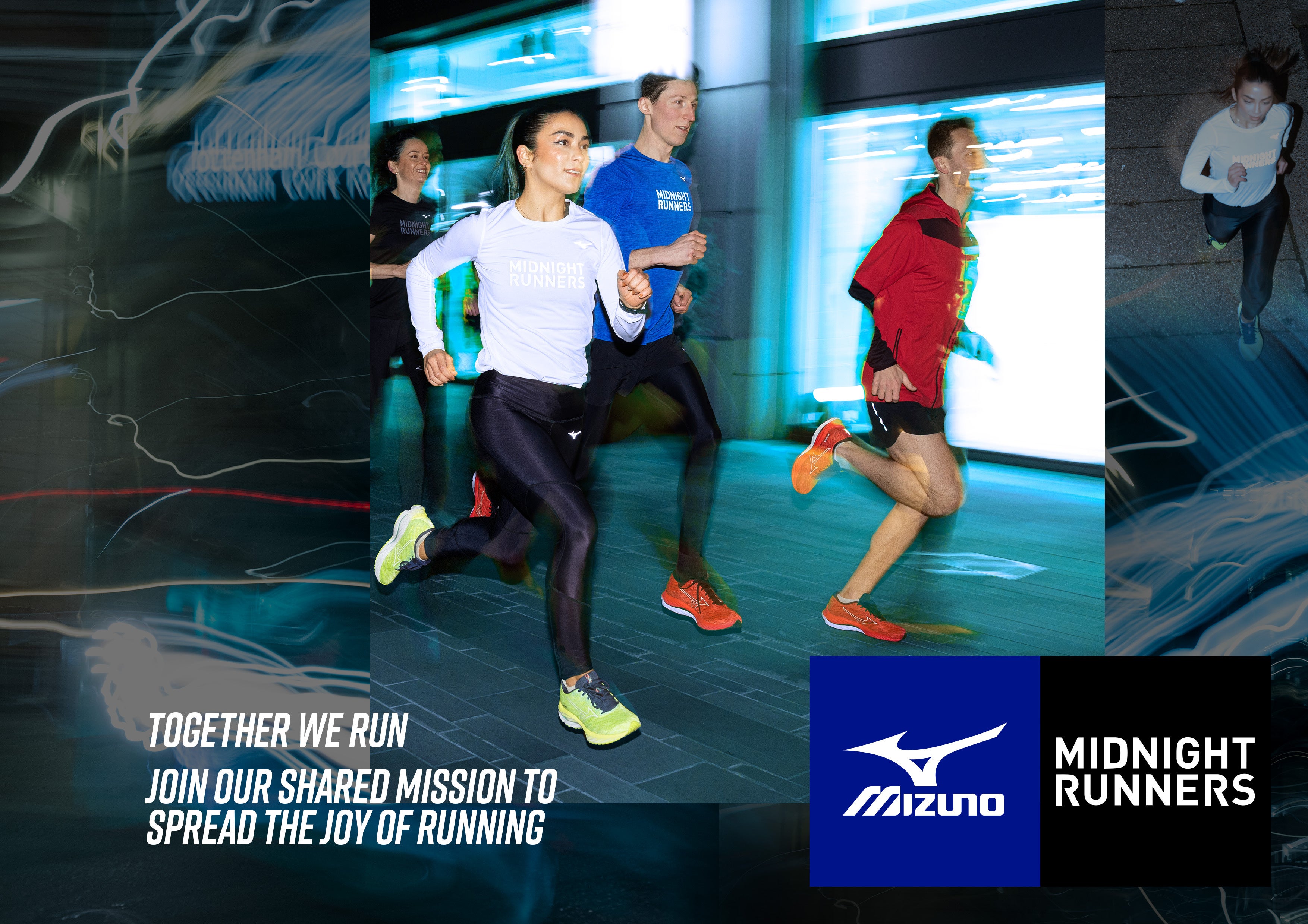 “Midnight Runnersの目標は、これまでも、そしてこれからも、世界中のできるだけ多くの人々に、身近で楽しいフィットネスを提供し、その人々が互いに、そして街とつながるような方法をとることです。ミズノと協力して、ランニングの喜びと魔法、そしてMidnight Runnersを世界中に広めていけることをたいへんうれしく思います。”