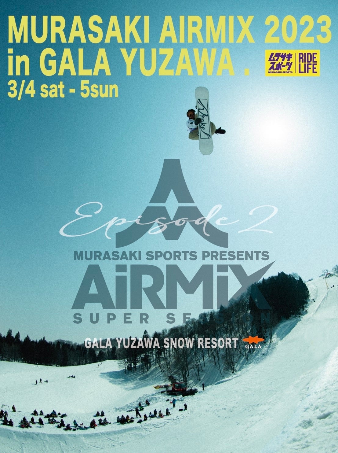 AIRMIX実行委員会は積雪量の不足から、2023年3月4日(土)~5日(日)にGALA湯沢スキー場で開催を予定しておりました、大型屋外スノボコンテスト「MURASAKI AIRMIX SUPER SESSION 2023」の中止を決定いたしました。