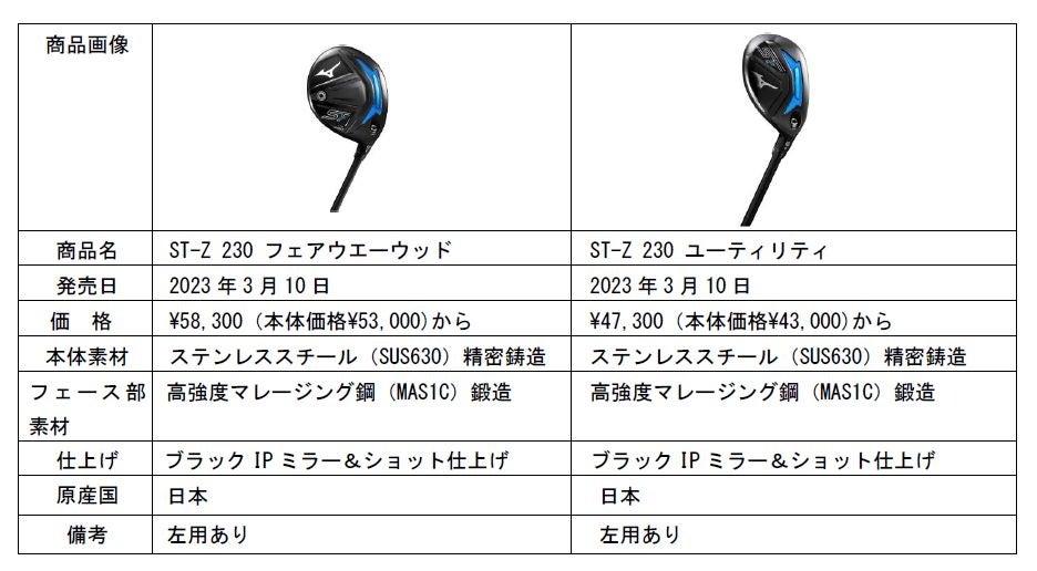 また、「ST-Z 230」と同様の機能を搭載したフェアウエーウッド、ユーティリティも同日に発売します。
