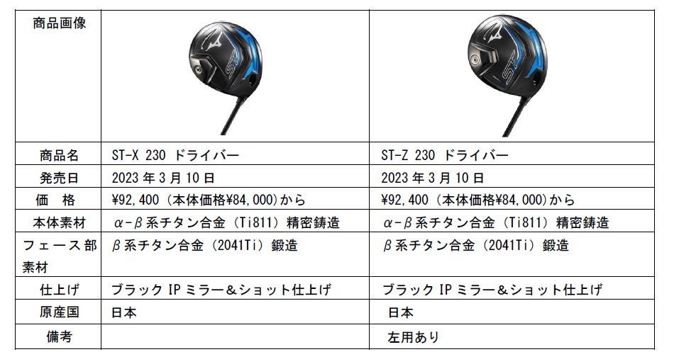 ミズノは、さらなる飛距離性能を追求し、ボール初速をアップさせる新機能を搭載したゴルフクラブ「ST-X 230(エスティー エックス ニーサンマル)」「ST-Z 230(エスティー ゼット ニーサンマル)」シリーズを、3月10日に全国のミズノゴルフ取扱店で発売します。
