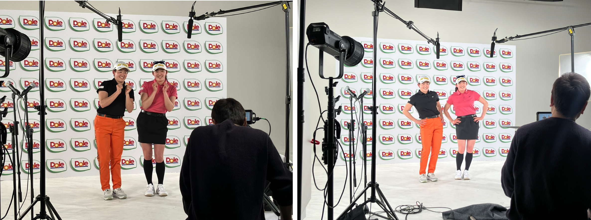 「こうやって大きなスタジオで撮影する機会があまりないので、とても良い経験になりましたし、楽しかったです。バナナは、ラウンド中でも小腹が空いた時に食べますが、栄養がすぐに摂取できるところが助かっています。2023年シーズンは初優勝目指して頑張ります!」