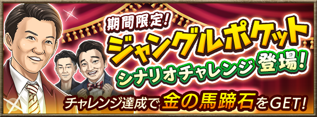 吉本興業所属のお笑い芸人ジャングルポケットの太田さん、斉藤さん、おたけさんがゲーム内に登場する様々なイベントが開催中です!さらに毎月行われる公式ブリーダーズカップを「ジャングルポケット杯」として開催します。
