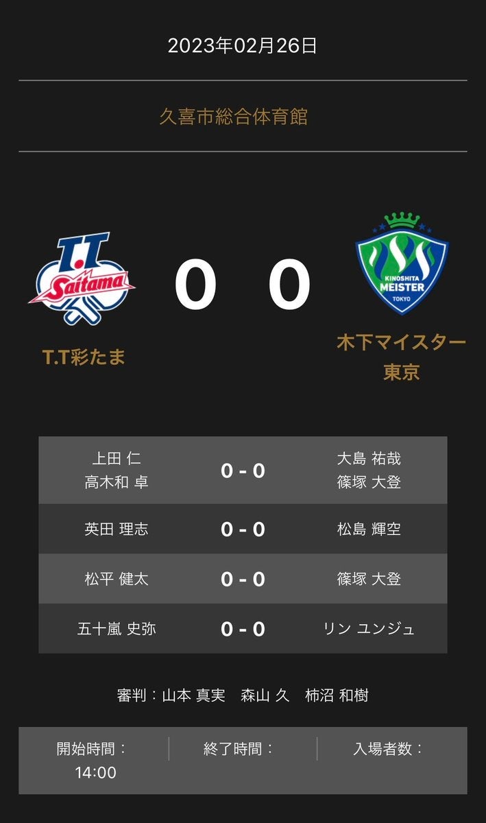 ホームプレスリリース ノジマTリーグ2022-2023シーズン公式戦 2月26日(日)14:00試合開始 T.T彩たま vs 木下マイスター東京 対戦オーダー発表 2023年02月26日 13時07分 公開|スポーツマニア編集部プレスリリース 一般社団法人Tリーグのプレスリリース ノジマTリーグ2022-2023シーズン公式戦 2月26日(日)14:00試合開始 久喜市総合体育館開催 T.T彩たま vs 木下マイスター東京の 対戦オーダーが発表されました。